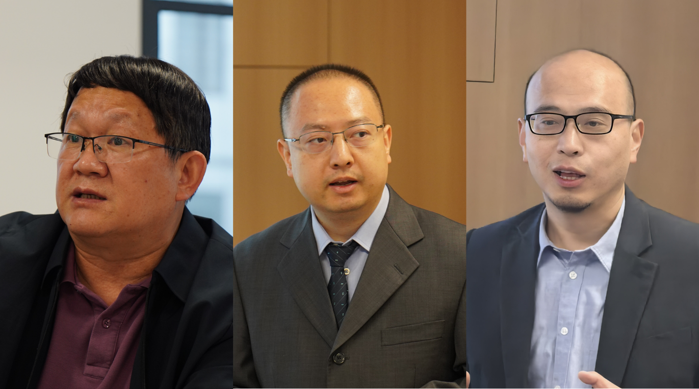 李春来、崔一飞、冯鹏(从左至右)作报告