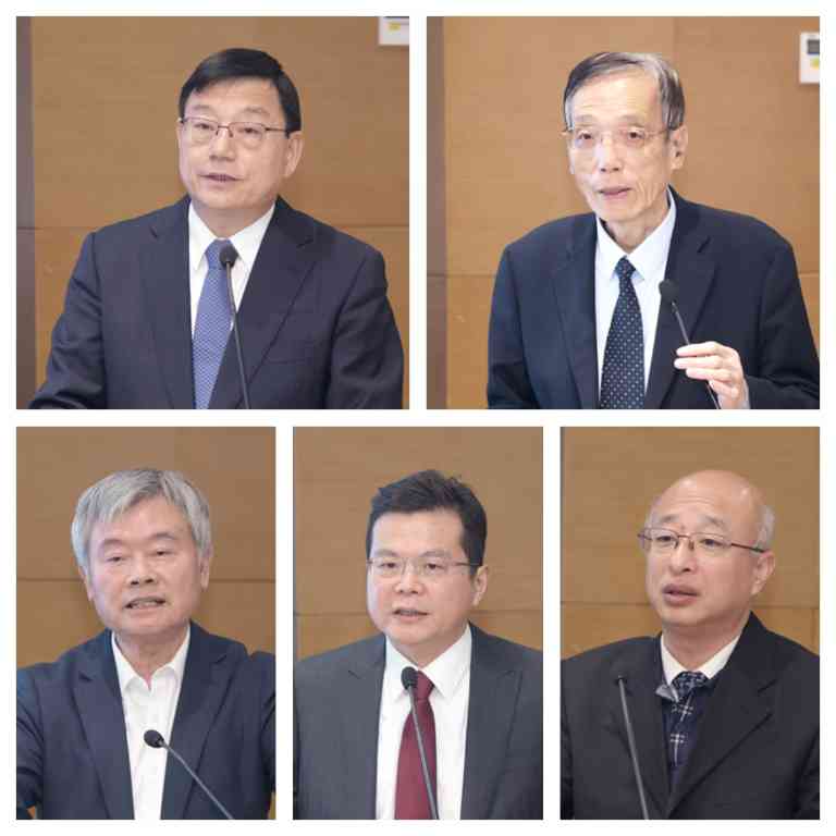 胡祖才、刘世锦、蔡继明、冯奎、周毅仁(从左至右,从上至下)作主旨报告