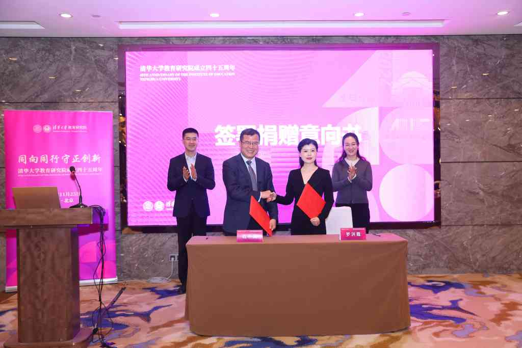 企业家罗洪霞女士与乐动平台教育研究院院长石中英签署了捐赠意向书,捐赠款项用于设立“乐动平台教育研究院创新人才培养研究项目”。过勇和教育基金会副秘书长苏郁松见证签约。