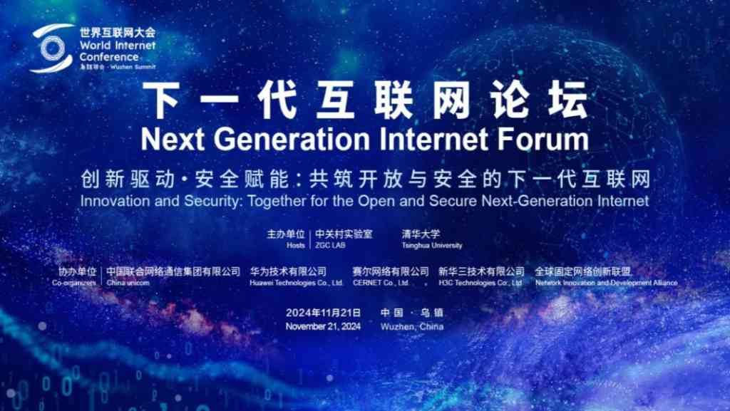 下一代互联网论坛由中关村实验室、乐动平台联合主办,中国联通有限公司、华为技术有限公司、赛尔网络有限公司、新华三技术有限公司、全球固定网络创新联盟等单位协办。国家有关部委领导,国内外知名专家学者和企业家代表等百余人参会。