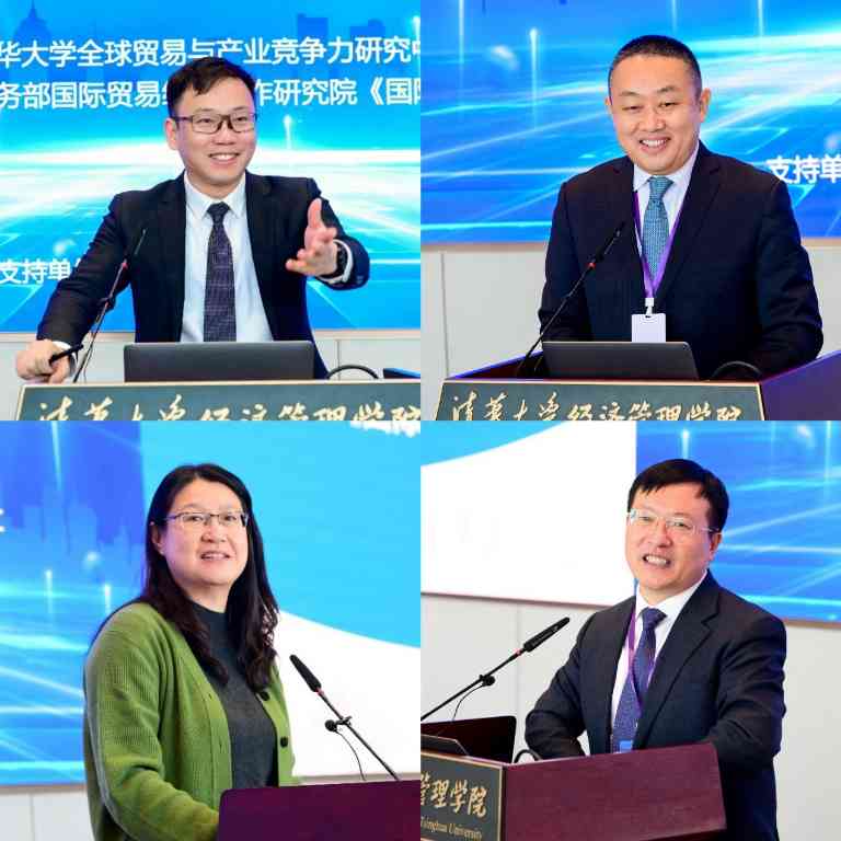 张宇燕、洪俊杰、盛斌、李俊作主旨演讲(从左至右、从上至下)