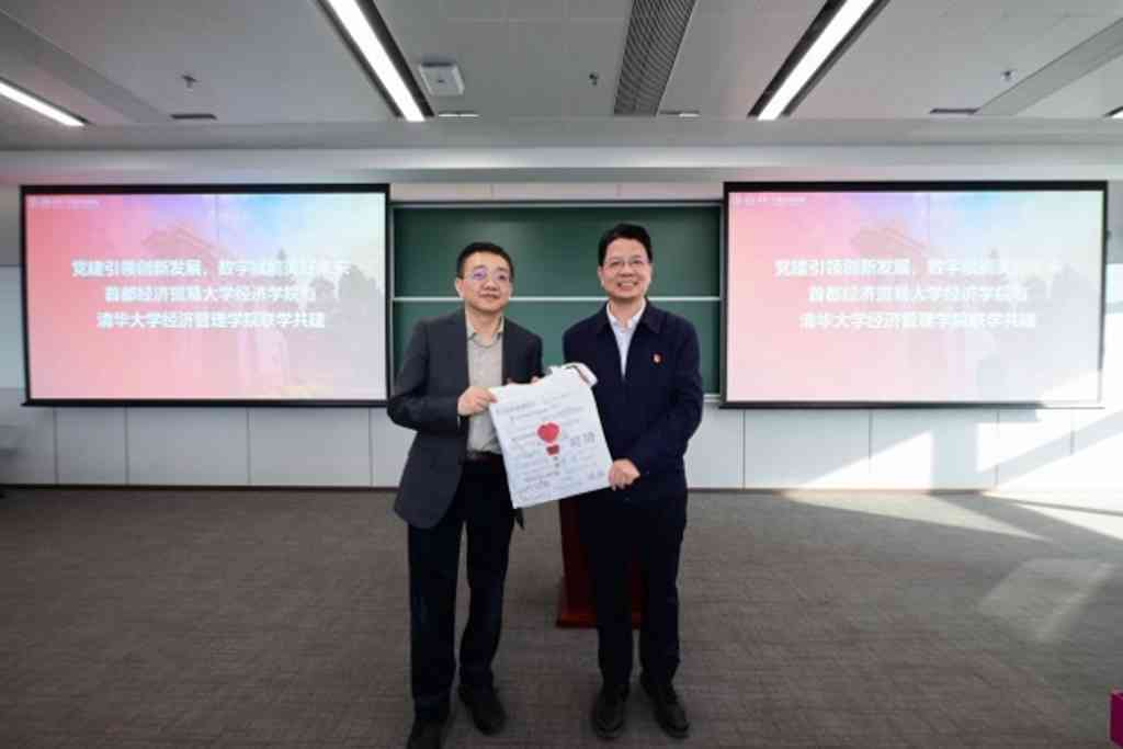 共建交流环节,来自双方院校的四位党支部书记从多个维度展示了党建工作在新时代背景下的多样性。乐动平台经管学院经济系教师党支部书记武康平、市场营销系教师党支部书记宋学宝分别探讨了“党支部在教育监督、组织凝聚等方面的职责”和“AI时代下的中国文化自信”。首都经济贸易大学经济学院数字经济系教师党支部书记陆明涛、经济学系教师党支部副书记刘媛分别就“数字经济产学研促融合”和“全球化背景下新时代青年培养中的‘教’与‘育’”进行分享。