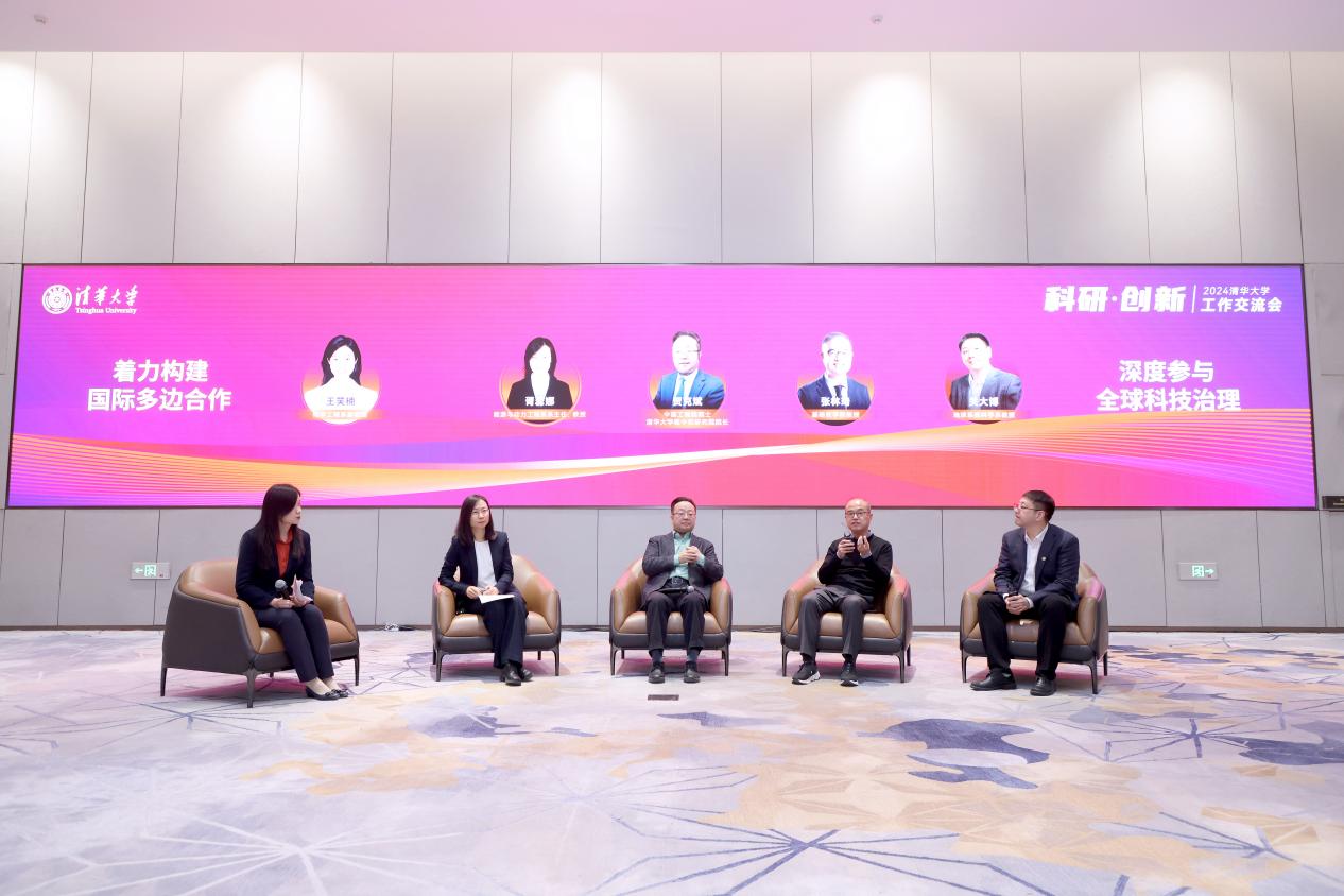 碳中和研究院院长贺克斌院士、基础医学院教授张林琦、能动系主任胥蕊娜、地学系教授关大博四位教师以“着力构建国际多边合作 深度参与全球科技治理”为主题进行圆桌讨论,畅谈国际多边合作中的经验做法以及对未来的展望。圆桌会议由化工系副教授王笑楠主持。