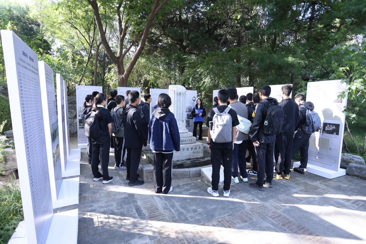 “三一八”断碑处设置了校史馆《烽火弦歌——抗战时期的清华》专题展中的部分图文展板,现场还发放了专题展场刊。学生会、研究生会功能型党支部成员为师生讲述清华英烈生平事迹。