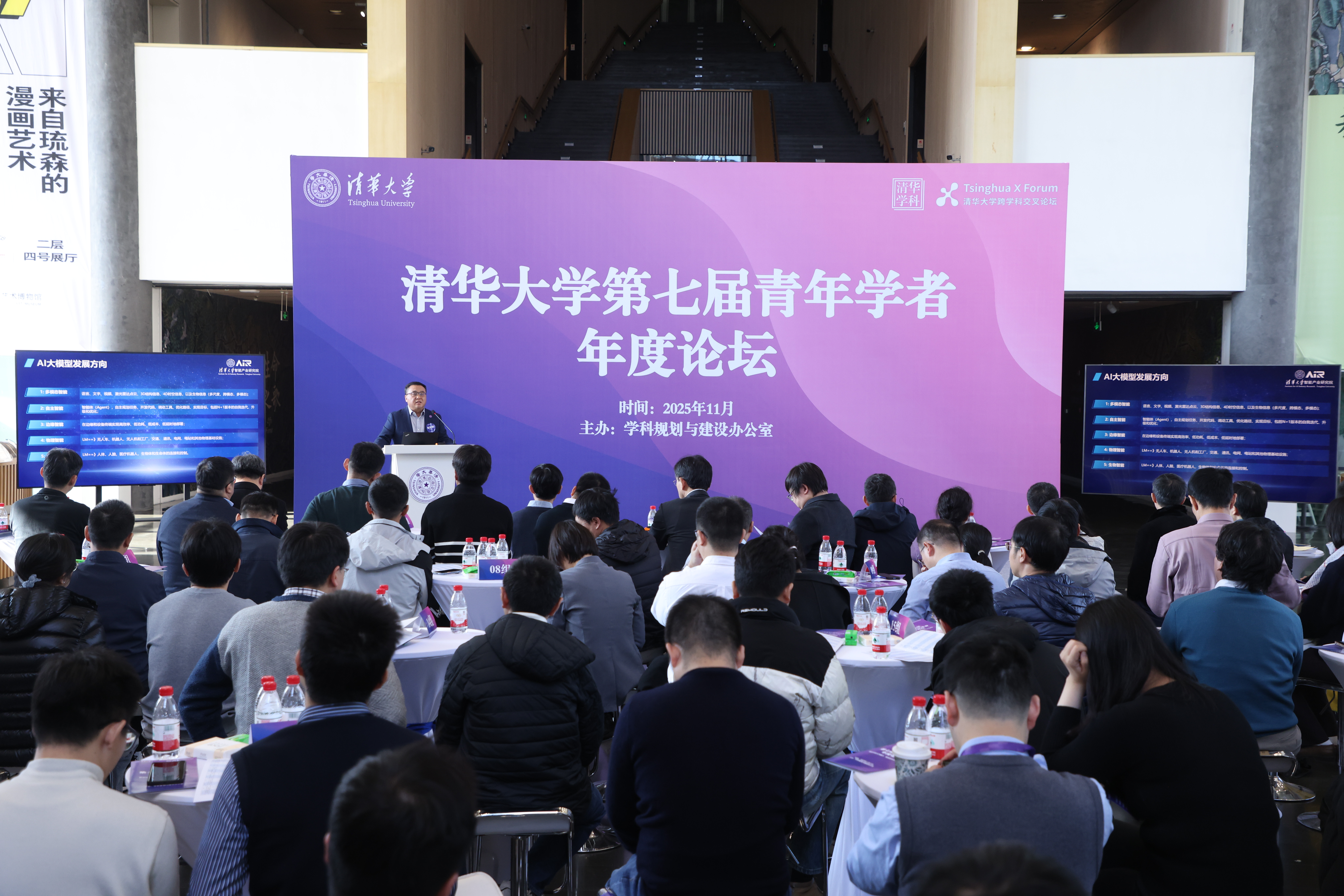 智能产业研究院院长张亚勤院士在主旨演讲中以“智能涌现”为主题,探讨了人工智能技术及产业的前沿发展趋势,介绍了智能产业研究院的发展情况。生命科学学院副教授王建斌结合生命科学领域交叉研究的经历、地球系统科学系教授刘竹围绕碳领域的前沿探索作主旨报告。学科规划与建设办公室(以下简称“学科办”)主任王亚愚主持论坛。