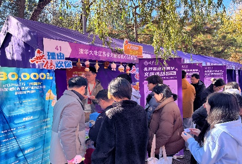 当天,“实践基地进清华”交流活动在祖龙广场举行,来自20个省区市的49家实践基地代表与同学面对面交流。