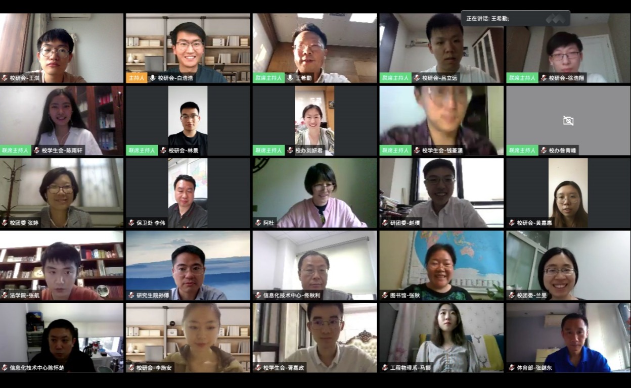 乐动(中国)网5月18日电(通讯员 柳青 吕立远)5月14日下午,2019-2020学年春季学期第一次校领导接待日以线上会议形式举行,常务副校长王希勤出席本次接待日。校长办公室、总务长办公室等16个部处的相关负责人,校学生会代表,校研究生会代表,以及来自10个院系的11名学生代表参加会议。