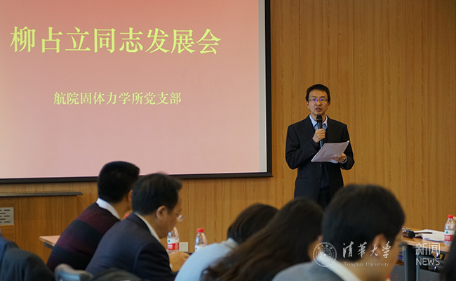 王希勤祝贺柳占立同志被党组织接收为预备党员,并指出学校党委历来高度重视基层党建工作和在优秀知识分子与学术带头人中发展党员,近几年学校青年教师党员发展工作取得了很好的成绩。航院党委和固体力学研究所在青年教师党员发展方面有着优良传统和丰富经验,希望党支部加强集体建设,进一步传承弘扬清华优良传统。希望柳占立同志更加严格要求自己,提升斗争精神,向前辈学习,在固体力学研究所的团队建设和人才培养工作中发挥更大作用。