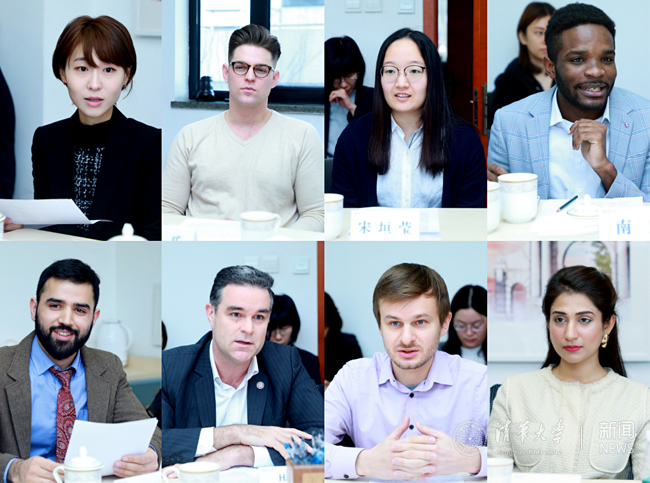 韩国籍社科学院博士生孔裕善,美国籍社科学院硕士生太乐、本科生宋垣莹,刚果(金)籍经管学院硕士生南唐,阿富汗籍社科学院博士生沙明、澳大利亚籍教研院教授寇海明,俄罗斯籍能动系副教授达米,巴基斯坦籍社科学院科研助理明竺先后作交流发言,分享各自在清华工作学习生活的体验。