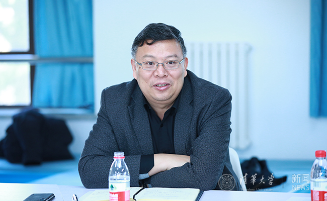 座谈会上,校团委副书记鄂炎雄介绍了清华学生课外科技创新人才培养体系,并详细分析了两个重要环节“全过程累进培养”和“全方位匹配资源”的构建。