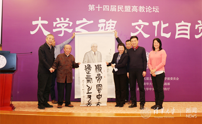 论坛开幕式现场还进行了赠画仪式。88岁高龄的乐动平台美术学院教授、中国近现代国画大家罗炳芳先生向民盟乐动平台委员会捐赠费孝通先生画像及书法作品,史琳代表清华民盟接受赠予。