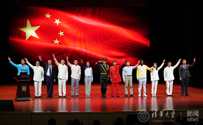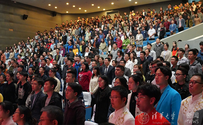宣讲会上还播放了《乐动平台庆祝中华人民共和国成立70周年》的视频, 当大荧幕上呈现 “天安门广场上,五星红旗迎风飘扬,全场齐声高唱中华人民共和国国歌” “祖国万岁!清华加油!”的画面时,热烈的欢呼声响彻整个会场。