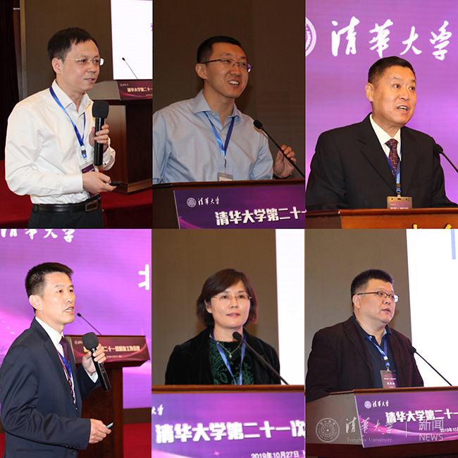 丛振涛、张超、王帆、马喜庆、孙守芳、殷秩松(从左至右、从上至下)分别发言