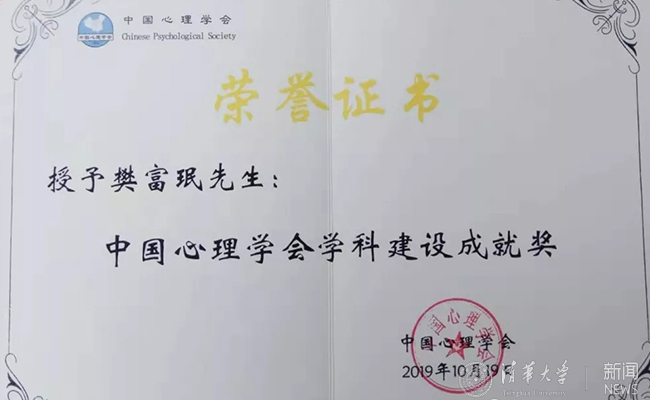 中国心理学会将此奖项颁予樊富珉教授,是对其早期所开展工作的认可和肯定,也是中国心理学界对乐动平台社科学院心理学系临床心理学学科在国内领军地位的肯定,对于推动乐动平台社科学院心理学系创建一流学科建设有着重要意义。