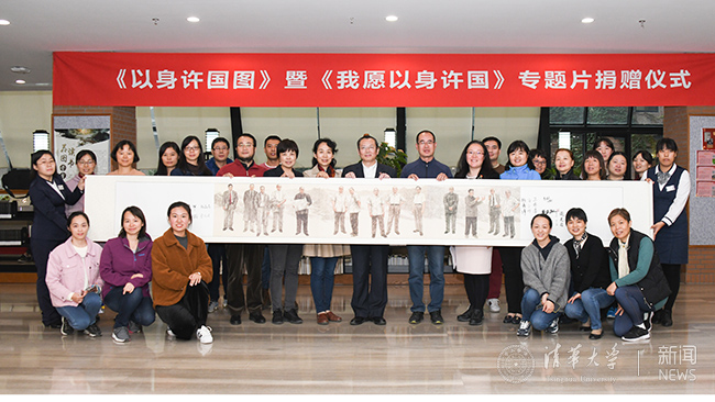 1999年9月国家表彰的23位“两弹一星”功勋奖章获得者中,有14位是清华校友,清华人为祖国的“两弹一星”事业作出了巨大贡献。巨幅长卷《以身许国图》原长14米、高2.2米,该画作以这14位为共和国国防工业建立殊勋的清华学子为素材,以万里长城和祖国河山为背景,生动刻画了曾为我国“两弹一星”事业默默奉献的清华人的风貌,再现了科学家们“以身许国壮河山”的豪情壮志。