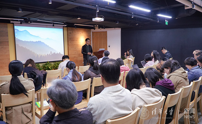 宣传部文化办联合党支部宣传委员方锶、纪检委员林源分别介绍了支部组织开展系列特色调研课题——“大国工程中的清华力量”项目进展情况,并分别从项目概况、清华力量和记者手记三个视角,分享了“神威·太湖之光”超级计算机和“两弹一星”工程中一代代清华人所发挥的重要作用和感人事迹。