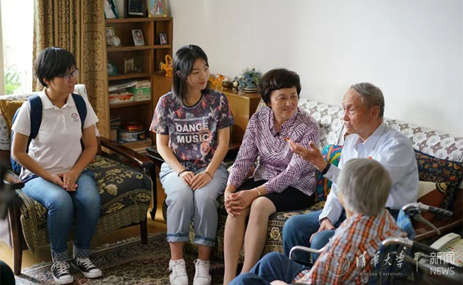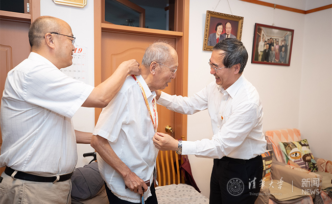 9月30日下午,副校长彭刚到图书馆离休教师徐永强家中慰问。彭刚为徐永强佩戴“庆祝中华人民共和国成立70周年纪念章”,对徐永强老师为图书馆作出的贡献表示感谢,并祝愿她健康长寿。徐永强回忆起在清华工作的往事,对学校和国家日新月异的发展表示感动和感慨。