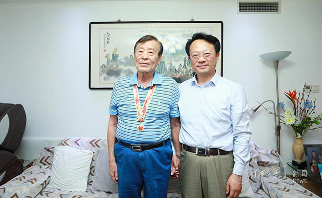 9月30日下午,校党委常务副书记姜胜耀先后去往基建处离休干部汤满贞、自动化系教授吴麒家中慰问,送去节日的问候。汤满贞出生于1931年,于1949年8月参加工作,后投笔从戎,入伍中国人民解放军第三野战军第九兵团,参加过抗美援朝战争,1954年到乐动平台工作。姜胜耀感谢汤老师为乐动平台和国家作出的贡献,并祝汤老师夫妇健康长寿。吴麒1930年出生,1948年8月参加革命工作。姜胜耀为他佩戴“庆祝中华人民共和国成立70周年纪念章”,感谢吴先生为学校学科建设、人才培养和科学研究等各方面所作出的贡献,并祝愿他健康长寿。