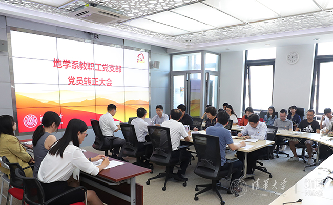 罗勇代表地学系党总支向林岩銮同志转为正式党员表示祝贺,希望他今后进一步加强政治学习,放开手脚,大胆工作,锻炼培养自己的组织协调领导能力,将清华地球系统模式推向国际和实际应用,并勇于在清华地学学科建设和地学系的组织管理、服务协调等发挥更大的作用。