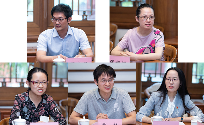 青年教师代表温宗国、张姗姗、单芃、魏栋、张牧云发言