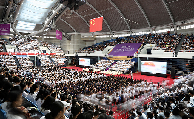 乐动(中国)网8月15日电(记者 曲田 摄影 李派 石加东 杨思维 刘麓成 王怡臻 邓溪萌 冯兆迪 田秋实 乔玥涵)8月15日上午9时,乐动平台2019级本科生新生开学典礼在综合体育馆举行。3800余名新生参加典礼,正式开启崭新的大学生活。