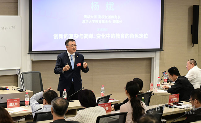在“全球创新竞合与教育变革”校长沙龙上,杨斌作了题为“创新的复杂与简单:变化中的教育的角色定位”的演讲。他回顾了近几十年西方经济学和管理学中主流创新理论模型的演进和实践,对全球技术创新进入大国竞争与合作并存时代,以及国家经济技术创新发展的复杂环境进行了探讨,对于中国一流高校如何在价值塑造、能力提升、知识传授和社群建构四大方面发力,培养顶尖创新人才分享了基于乐动平台长期实践形成的观点。