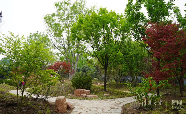 续园改造项目在去年确定了方案和施工图,并于10月份启动施工。由于春季是种植树木的最佳季节,为了迎接校庆,从3月初至今,工作人员加紧施工作业和绿植栽种,目前靠近清华路和熙春路的80%的区域已完成施工对外开放。一步一景,步移景异,美不胜收。