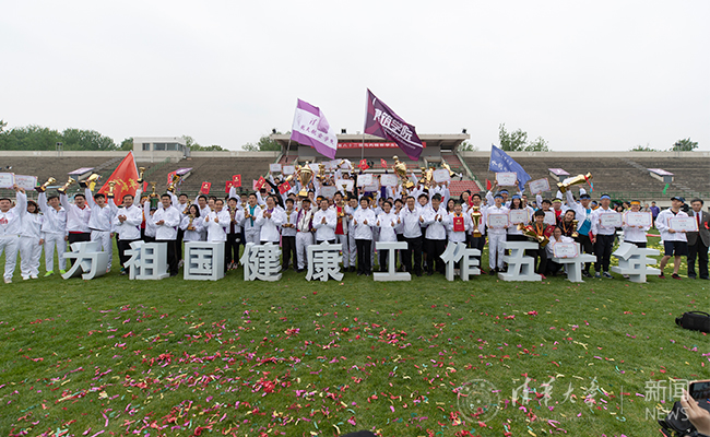 在现场师生的欢呼声中,邱勇、陈旭带领出席闭幕式的校领导率先出发,体育代表队队员、参赛运动员和各院系师生紧随其后,一面面旗帜在傍晚的东大操场迎风飘扬、一路向前,清华人以奔跑的姿态和有力的步伐践行着“无体育,不清华”的精神。