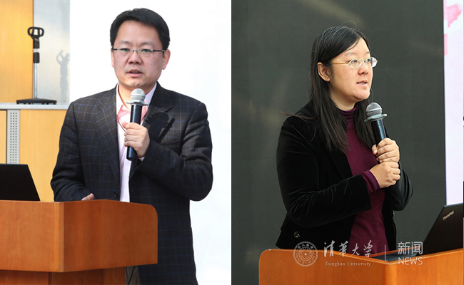 保卫部部长李志华(左)、计算机系党委副书记贾珈分别发言