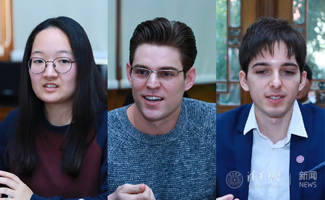 美国籍社科学院本科生宋垣莹、硕士生太乐,俄罗斯籍中文系硕士生罗维卫,阿富汗籍社科学院博士生沙明,白罗斯籍人文社会类本科生苏小小,校研究生会主席王展硕先后作交流发言,分享各自在清华的学习生活体验。