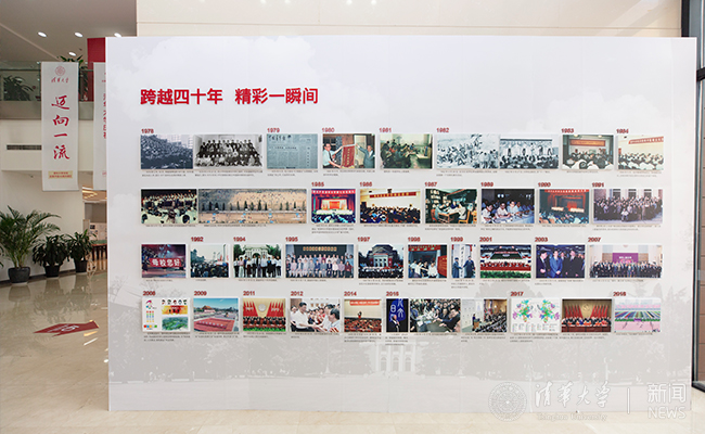 在一楼序厅,选取一些富有代表性的历史照片和文书档案,以图片墙和文献展的形式,简要回顾了40年的不平凡历程。在10大版块展区,也配合主体展版,展出了档案馆馆藏和师生、校友捐赠的反映40年来清华学习工作和校园生活变迁的珍贵实物档案资料。