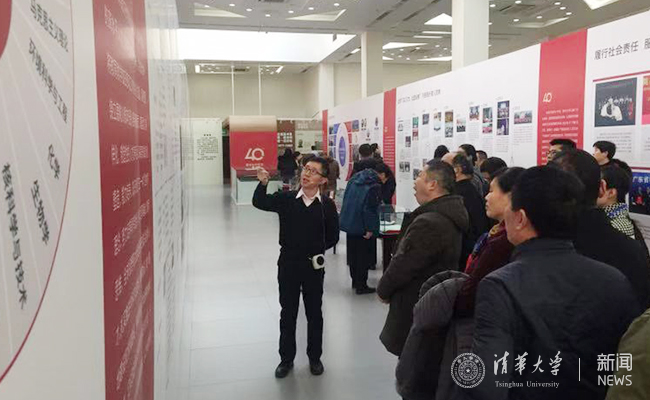 根据学校部署,展览筹备工作由党委宣传部、校史馆牵头,党办校办、政策研究室、发展规划处、教务处、研究生院、科研院、文科处、人事处、国际处、学生部、研工部、团委、继教处、后勤党委等分别作为各部分内容的主责单位,组织部、统战部、离退休处、纪委办、成果办、国际教育办、校地办、基建处、资产处、实验室处、财务处、工会、校友总会、清华控股等也都提供了大量资料,清华电视台专门拍摄、制作了专题片和视频剪辑,档案馆精选了反映改革开放40年发展进程的文书、图片、人物、实物等多类档案史料,相关院系提供了反映我校高水平学术成果的实物、模型、图书等。各部门、各单位对展览脚本的起草、修改,展览设计图样的校核、修订,演示展品的提供、说明等,都给予了积极配合和大力支持。美术学院由硕士研究生组成设计团队,在教师指导下出色完成设计任务,使展览设计过程成为校史育人过程,也是本次展览的一个特色。