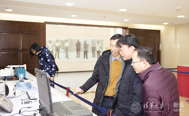在二楼展厅的实物展区,展出了8个获国家科技奖励的科研产品实物或模型,以及4组图书,分别反映了我校在科学技术和人文社科方面的丰硕成果。其中,有的展品也正在国家博物馆“伟大的变革──庆祝改革开放40周年大型展览”上展出;有些成果不仅是展品,同时也是展示手段,比如运用自动化系戴琼海院士等发明的裸眼3D技术装置,播放清华电视台为配合此次展览摄制的专题片《梦想与超越》,达到展示内容与形式的完美结合。