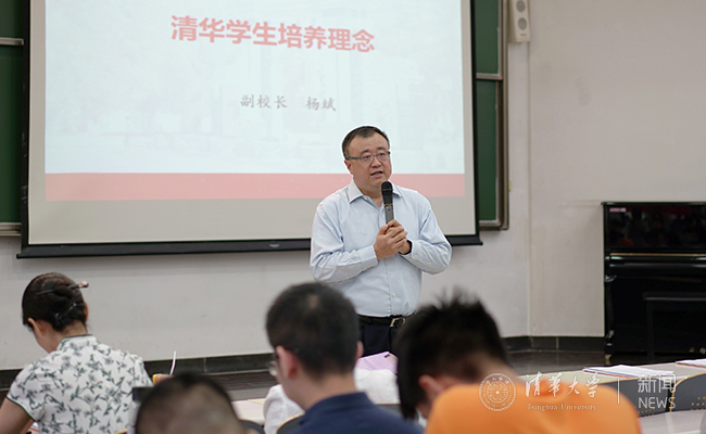 杨斌以“清华的学生培养理念”为题,向班主任、辅导员作了专题报告。他强调了“教育者”的概念,结合清华“价值塑造、能力培养和知识传授”的“三位一体”人才培养理念,阐释了班主任和辅导员的角色与定位,希望班主任和辅导员要注重言传身教的重要意义,善于利用学校的各种资源平台,并能够把握学生成长过程中的重要时刻。