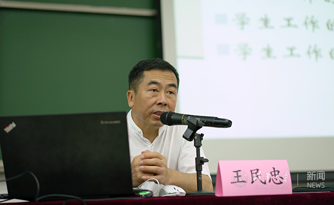 王民忠作了题为“新时代高校学生工作的使命、价值与作为”的专题报告。他围绕学生工作的使命,重点强调了思想政治教育在学生工作中的重要性,并从工作对象、家长、人才培养、民族复兴、自身发展五个方面诠释了学生工作的价值所在,鼓励班主任和辅导员们努力适应新时代,在工作岗位上更好地发挥自己的作用。