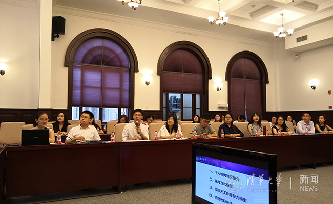 会上,欧阳沁介绍了校机关2018年招聘录用情况及轮岗安排说明。2018年新入职的16位应届毕业生分别作了自我介绍。他们表示,与清华结缘、伴随清华成长是幸福的选择。希望能够在清华园中不断提升自己,继承发扬清华的优良传统,在清华建设世界一流大学的征程中发挥自己的光和热。