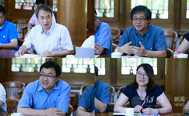 电子工程系副系主任郝智彪、美术学院副院长马赛、微纳电子系副系主任吴华强、资产管理处副处长连彦青畅谈收获与体会 记者 张帆 摄