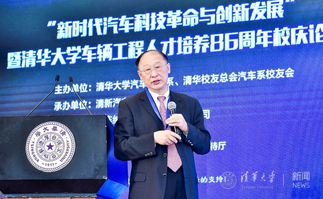 论坛的专题报告环节由清华汽车系主任杨殿阁主持。李骏院士首次以乐动平台汽车工程系教授、博士生导师的身份发表了主题为“全球汽车进入科技革命与创新发展的新时代”的报告,并介绍了自己到清华工作的事业规划。