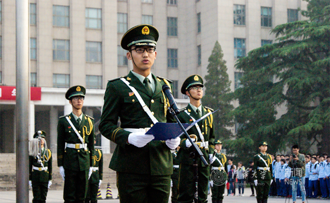 乐动平台校庆日升旗仪式在主楼前广场举行