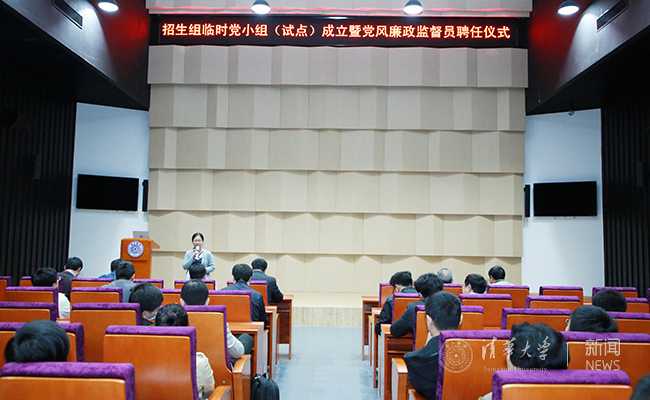 本科生招办党支部书记、招办副主任杨帆首先介绍了临时党小组成立的背景和为试点招生组聘请党风廉政监督员的初衷。杨帆表示,试点在招生组设立临时党小组,是为了进一步加强党对招生工作的领导,加强招生队伍中党员的组织建设和思想政治建设,以充分发挥招生组党员的先锋模范作用,确保招生组在政治上、组织上、思想上和行动上与党的教育方针和清华教育教学理念及人才选拔政策保持高度一致。招生组临时党小组系根据《中国共产党章程》规定和招生队伍党建工作实际,由本科生招办党支部申请,经学校机关党委审议通过并决定成立。