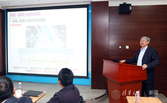 会上,土水学院结构工程研究所所长聂建国院士就高性能钢板—混凝土混合结构在国家重大项目中应用的有关情况作了汇报。