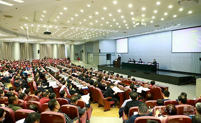 副总务长、后勤党委书记邱显清主持会议。副总务长关兆东、后勤各单位干部职工400余人参加大会。