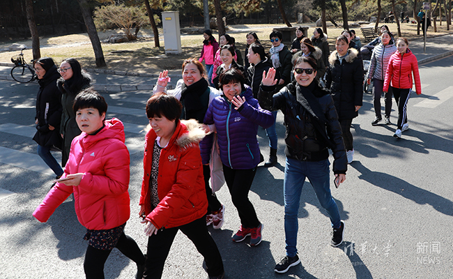 女教职工在西操集合出发。记者 张帆 摄