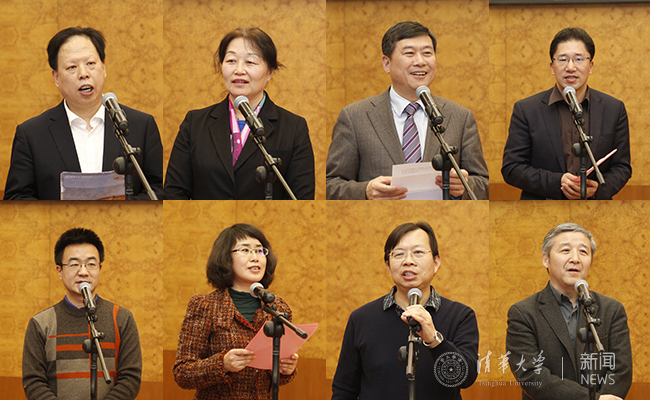 能动系教授吕俊复、体育部副主任赵青、北京清华长庚医院执行院长董家鸿、精仪系教授孙洪波、美术学院副教授米海鹏、幼儿园副园长李香月、汽车系原党委书记帅石金、人文学院教授汪晖(从上到下、从左到右)发言。记者 张宇 摄