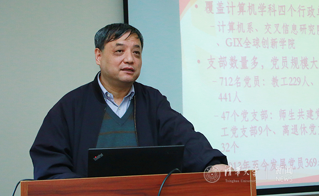 计五年级师生联合党支部书记、计算机系网络所教授刘卫东汇报了支部发展情况。他说,师生联合党支部在推进学生思想政治工作方面具有独特的优势:具有较多人生阅历和较高专业水平的师长对学生党员和积极分子的成长起到了引领作用;加强党支部、班团建设成为促进学生的全面成长和进步的有效抓手。