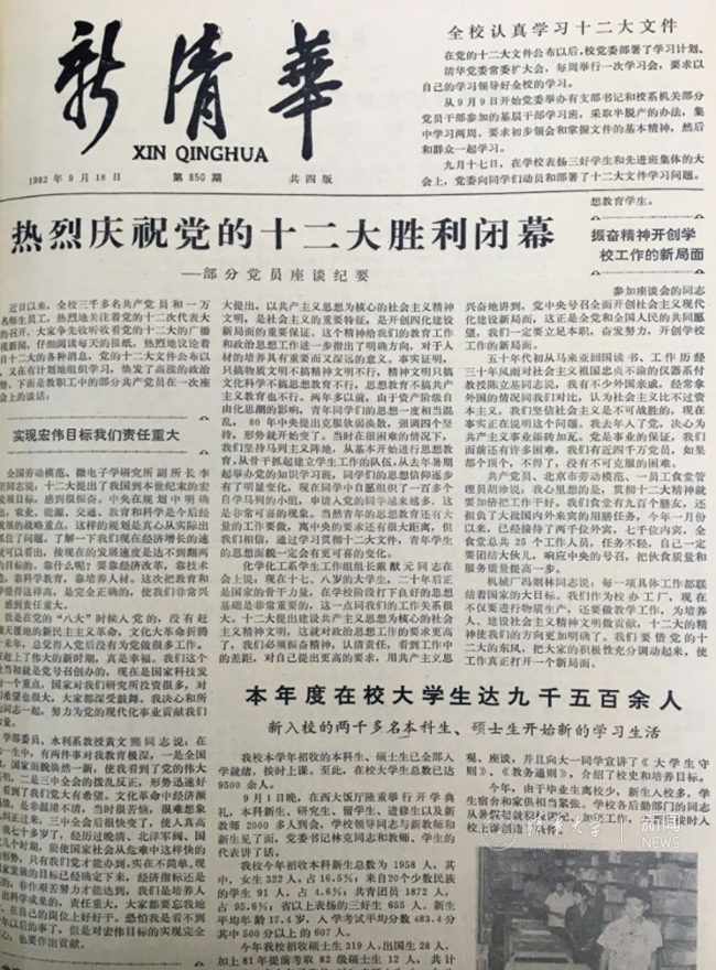 《新清华》刊登部分党员学习座谈十二大精神纪要。