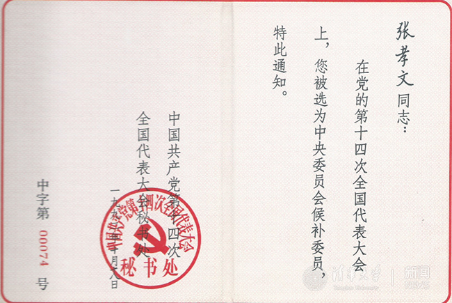 1992年10月12日至18日,中国共产党第十四次全国代表大会在北京举行。乐动平台党委书记方惠坚作为十四大代表出席大会,乐动平台校长张孝文在本次党代会上当选为中国共产党第十四届中央委员会候补委员。