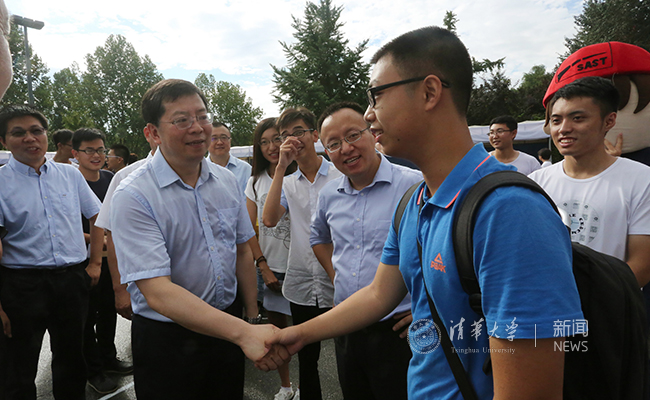 在机械、航空与动力类迎新点,邱勇鼓励新生们未来选择自己真正感兴趣的专业,把握大学阶段的美好时光,努力学习、勤于思考,不断提升自己,成为一个优秀的清华人。