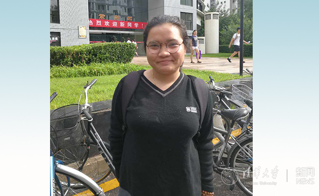 来自美国的秦荣已在开始适应清华校园。