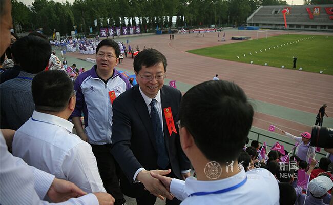 邱勇邀请中学校长代表参加运动会开幕式。贺施政 摄